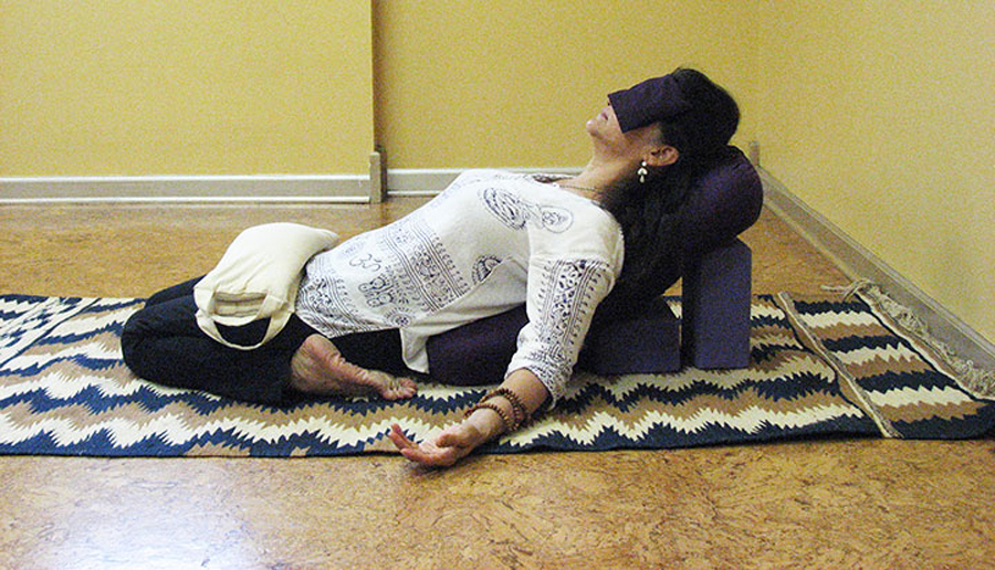 たとえばスプタヴィラーサナ(仰向けの英雄のポーズ)は、おなかの中までぐーっと引き伸ばしてスペースを作ってくれるので、胃もたれに、よく効くポーズです。(逆流性食道炎とヨガ:食後に猫背でいると内臓が圧迫されます。)