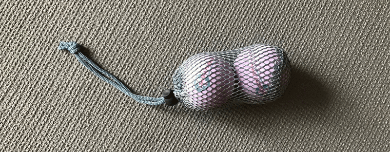 テニスボールを二つ少しだけ離して横に並べて(もしくは、長めのソックスの中に二つ入れて端を縛ります。)、背骨の両脇にちょうど当たるように調整して仰向けに寝ます。膝を立てて、足を床。お尻を少し浮かせて、肩甲骨を避けて、その下あたりから背中、お腹の後ろまでゴロゴロします。気持ち良いと感じる場所を特に集中的にゴロゴロ転がしていると、胃や食道がスッキリします。背中の凝りもほぐれます。