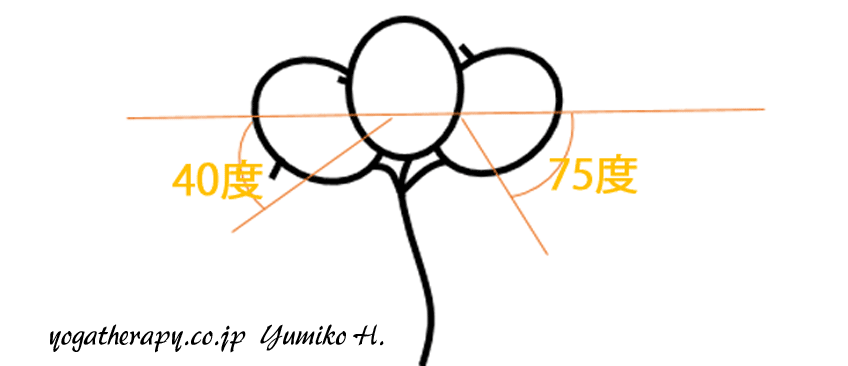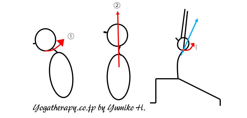 この図はアヌサラ・ヨガの「肩のループ」と「頭のループ」という考え方です。肩ループ(黄色)は、上あごの中心から始まり、首の後ろを通り、肩甲骨の底辺を通り、体の前面へ、そして再び上あごの中心を通ります。