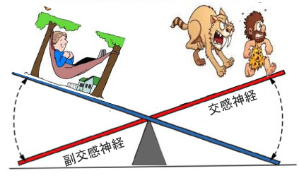 従来の考え方では自律神経は、交感神経(ストレス系、緊張系)と副交感神経(癒し系、まったり系)の二つに大別され、人は毎日、緊張とまったりの間をシーソーのようにバランスを取りながら生活していると説明されてきました。