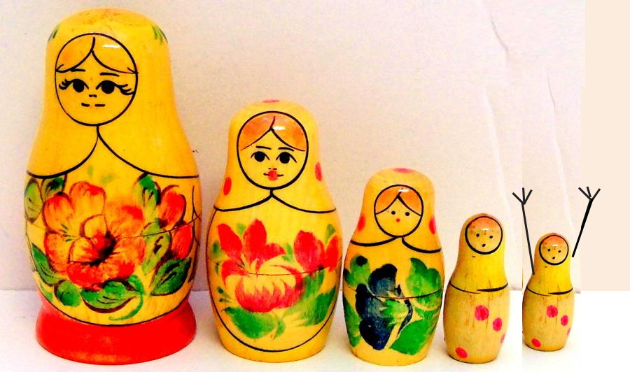 なぜ心にまで目を向けるかと言うと、心と体は切り離すことはできないからです。ヨガでは、人の体は5層(鞘・さや)でできていると考えます。外側は肉体で、その内側に私たち日本人が「気」と呼ぶエネルギーがあります。気を感じるのに特に不思議パワーは必要ありません。「彼/彼女からは生気が感じられない。元気がない」と私たちが日常、普通に観察していることです。(余談ですが、日本語には気を含む言葉実に多いです。気が利かない、空気読めない、、、きっと、昔、日本人はもっと気を感じながら生きていたのでしょう。)そして3層が心・感情、4層が理智・知性、5層が歓喜となります。ロシアの民芸人形のマトリョーシカのようなイメージです。