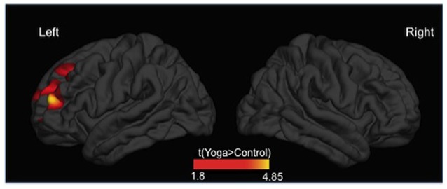 ヨガ・グループは前頭前野領域が著しく大きかった